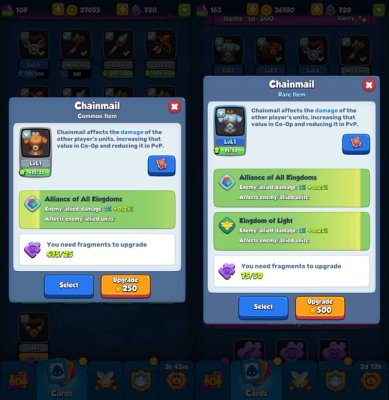To upgrade your items in Rush Royale, you need to have a set number of item fragments for your specific item slot and some gold at hand to upgrade your item.