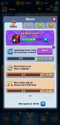 After watching 10 ads, you can open this chest in the quest screen to receive a huge reward and a handful of gold!